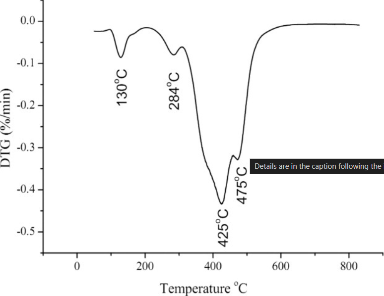 The decomposition of melamine remained at 284°C, whereas the decomposition of melamine phosphate started at 425°C, and the decomposition of boron phosphate occurred at 475°C. The shift in decomposition temperature of the F5 formulation was attributed to the increased boric acid weight percentage with respective to melamine. The results of TGA and DTGA showed similar thermal degradation behavior for the F4 and F5 formulations, as both formulations contained the same intumescent materials. However, the percentage weight loss was different, as the weight percentages of melamine and boric acid in the formulations were different. Increasing the weight percentage of boric acid with respect to melamine contributed to the increased residual weight. Among all of the formulations, F5 recorded the highest residual weight percentage of 29.67%, which was higher than those of C1, C2, F1, F2, and F4 by 42, 19, 31, 3.8, and 12%, respectively. This showed that the F5 coating enhanced the intumescent effect in terms of the residual weight percentage of char compared to other formulations.